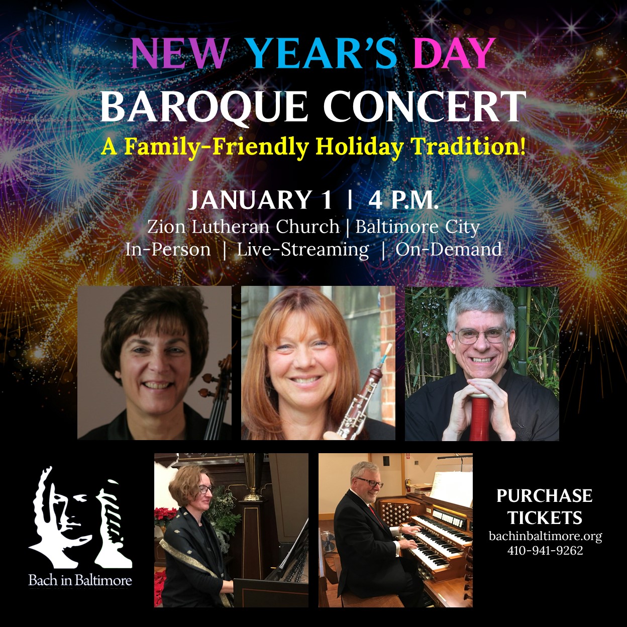 Ring in the New Year with an annual performance of Baroque favorites selected by Bach in Baltimore’s principal musicians, including Celeste Blase, violin; Sandra Lisicky, oboe; Terry B. Ewell, bassoon; Bozena Brown, harpsichord; and T. Herbert Dimmock, organ. In-Person & Live-Streaming tickets available at https://bachinbaltimore.org/portfolio-items/january1_2022/