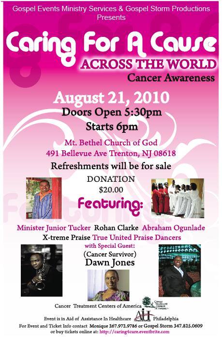 Your commitment to participate in the first Caring for a Cause Tour will raise awareness and educate the community about cancer. As we all know, cancer has no boundaries in regards to race, ethnicity, socioeconomic status or gender. According to the World Health Organization, cancer is the leading cause of death worldwide with 7.5million people who lose their lives to this disease.