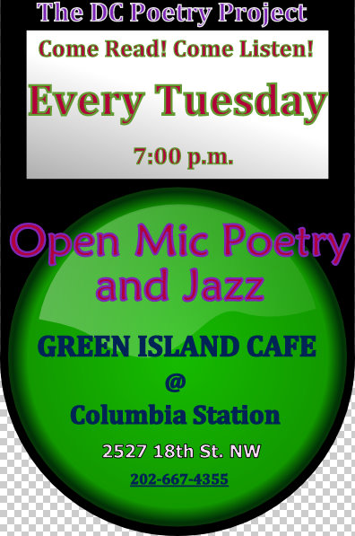 Because Green Island Cafe is next door to Columbia Station. one of the premier jazz spot in DC, the program will regularly feature local jazz vocalists and instrumentalists. The blending of poetry and jazz was conceived in the 1920s by African-Americans, maintained in the 1950s by counterculture poets like those of the Beat generation, and adapted in modern times into hip-hop music and other live poetry events. Audience participation will be encouraged throughout. So please come and support our program!