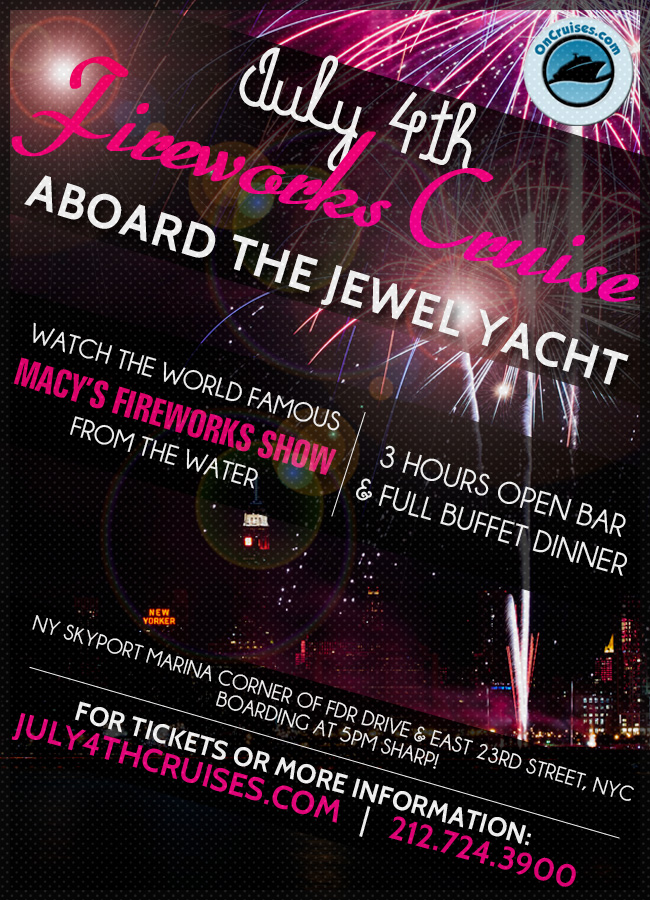Once we get past March, the city streets of New York City really start to heat up, and we all start to anticipate one holiday weekend where we don the red, white and blue and show how much love we have for this country - 4th of July weekend! This year, forget about the crowded parks that leave you with no room, or the boring cookouts at your uncle's house, why not opt for a family friendly event that brings all of the entertainment you could with for, but on the water!? The talk of the town this year has been all about the Jewel Yacht 4th of July cruise. If you're really looking to have the best view of the Macy's Fireworks spectacle (quite possibly the best fireworks show of the year) this is the best vantage point for you!