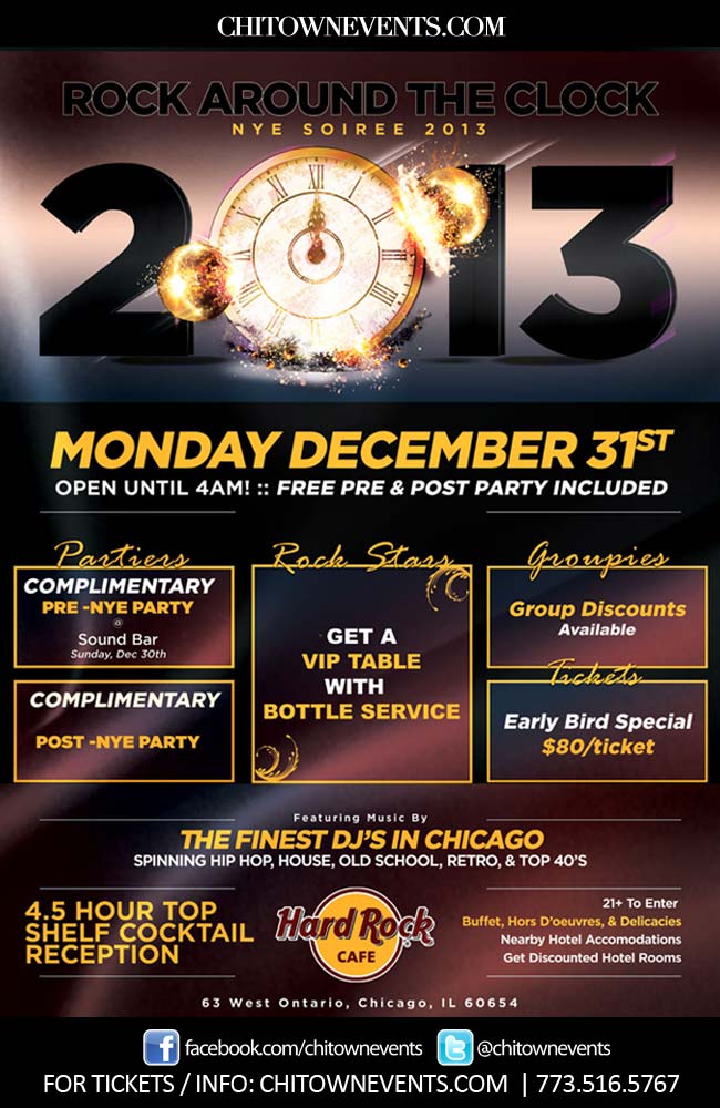 Call us now at 773-516-5767 to get more information at the New Years Eve event at the Hard Rock Cafe in Chicago