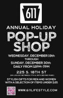 Join founder DJ Nigel Richards and 611 for their annual Holiday Pop-Up Shop as they transform an empty Rittenhouse Square garage into a unique retail boutique