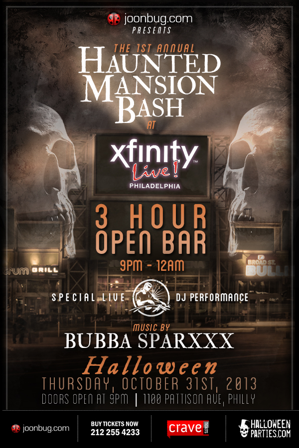 This Halloween, Philadelphia’s Xfinity Live will unbolt its doors for the 1st Annual Haunted Mansion Masquerade Ball to reveal the endlessly entertaining debauchery lurking within. Xfinity Live will be transformed into an nocturnal platform for a thrilling Halloween ball where the sexy and sinful carouse and cavort in their Halloween costume finery. Best of all; you’ll have full access to the spacious 80,000 square foot party palace where the willful and wild will be unleashing their inner devilish ways. With tantalizing areas such as Bullies, Spectrum Grill, PBR, Victory, X bar lounge/mezzanine and the NBC Sports Arena, Xfinity Live is huge and diverse enough to satisfy all your guilty pleasures and Halloween fantasies.