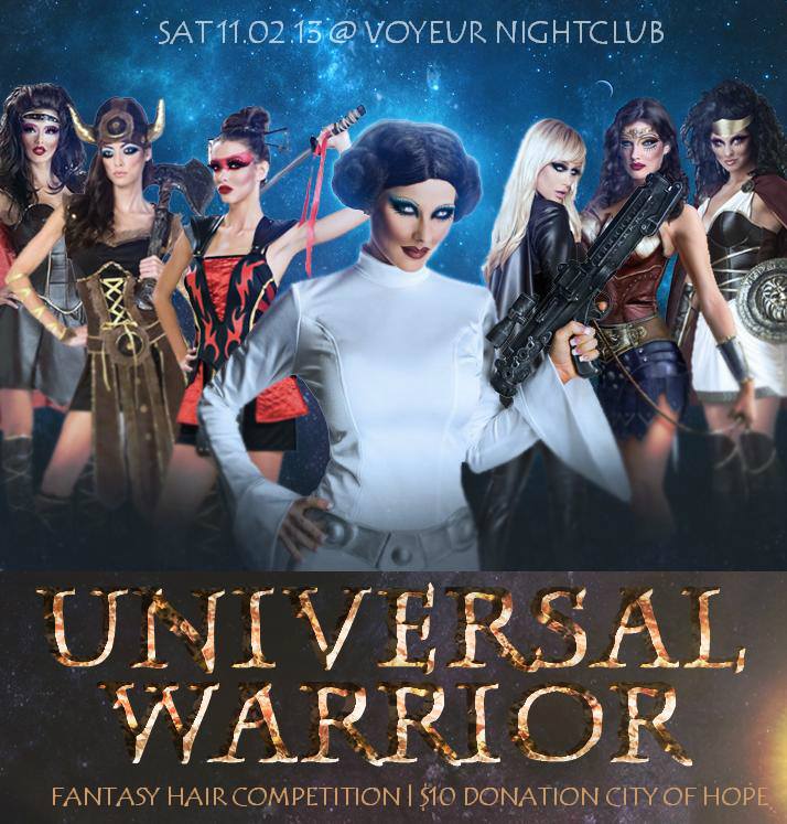 Vikings, Samurais, Super Heroes, Aliens, Military, Futuristic Commandos and every hair-hopping warrior in between will strut down the runway to salute the "Universal Warriors" at City of Hope - on the battle-lines fighting cancer, HIV/AIDS and other life-threatening diseases. Be prepared for epic battle scenes from Brittany Lynn and the Drag Mafia .