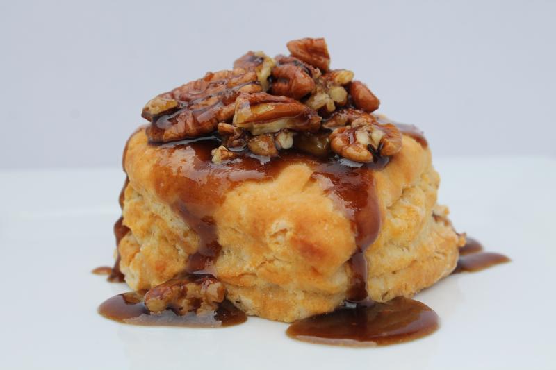No stranger to the kitchen, Riley owned and operated her own successful, Southern-style restaurant in North Carolina. Mama Riley’s mission is to "bring a Northern flair to a Southern classic" and quality is baked into every item she allows out the door. Mama Riley and her team, have created over 50 signature heart-shaped, biscuit recipes. The top sellers include both sweet and savory offerings, like her famous Chicken Pot Pie and Bananas Foster with salted Pecan Praline, Kahlua stuffed Brie with brown sugared pecans, (seen in photo) Spiced Mango with Tequila-Lime glaze. Gluten free versions are available.