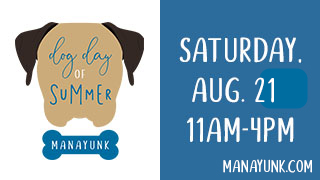 Join us for a tail waggin’ good time at Dog Day of Summer in Manayunk. Bring your furry friend to enjoy pet friendly vendors and activities or stop by one of our pet adoption booths to give a lucky pup his fur-ever home. Saturday, August 21st from 11 - 4. Main Street, Manayunk.