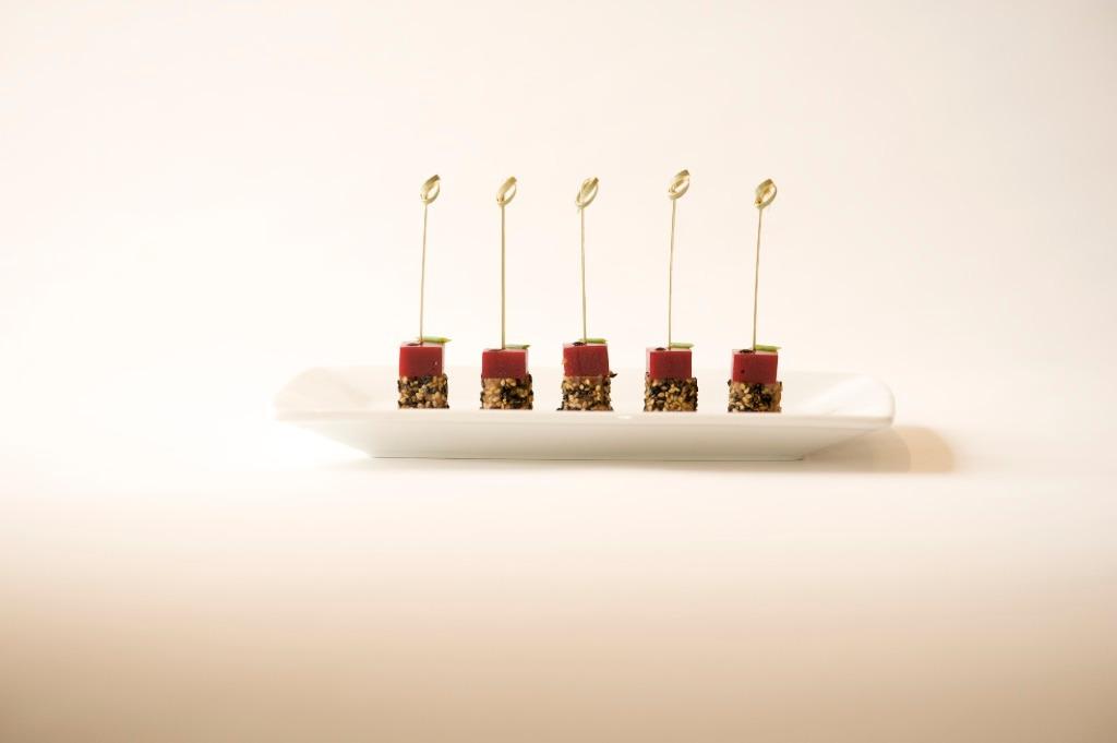 sesame crusted tuna | raspberry mousse jelly | wasabi