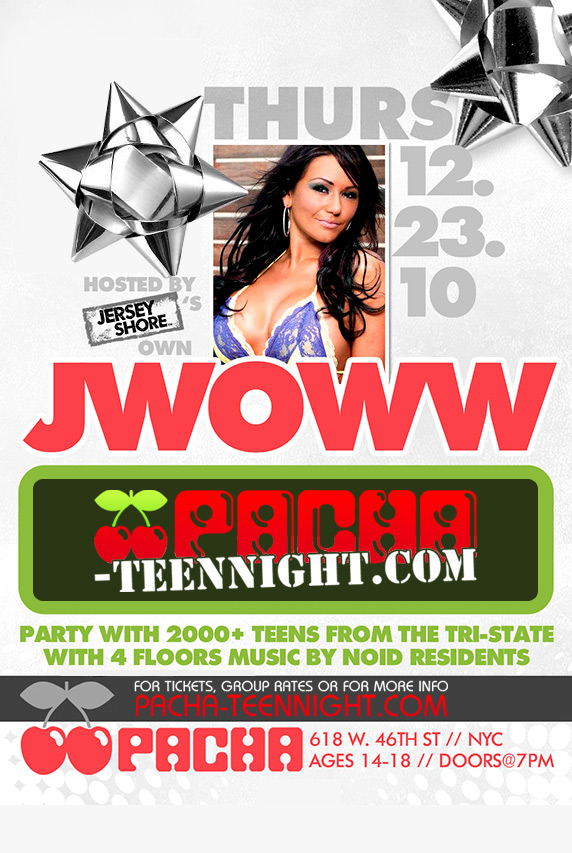 Welcome to the most anticipated teen night event of the year! Get to party at NYC's most exclusive nightclub with JWOWW from MTV's Jersey Shore on Thursday December 23, 2010