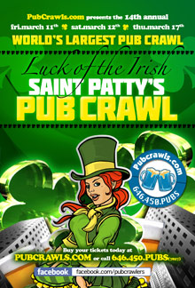 For More Information: Call 646.450.7827 or log onto http://pubcrawls.com/saint-pattys-pub-crawl.php