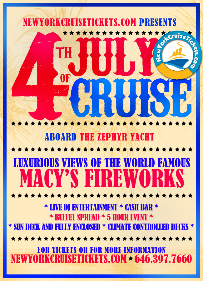 For More information call 646-397-7660 or log onto http://oncruises.com/events-nyc-zephyr-yacht-july-4-fireworks-cruise.php