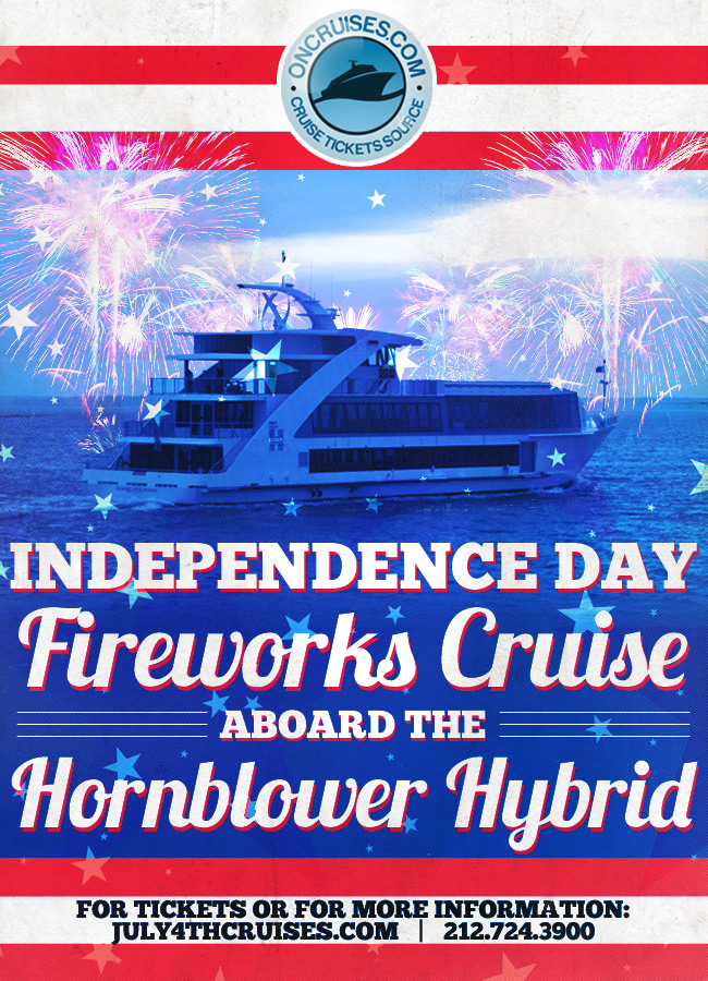 For more information please visit:http://julyfourth.com/event/new-york/hornblower-hybrid-yacht/independence-day-fireworks-cruise-aboard-the-hornblower-hybrid