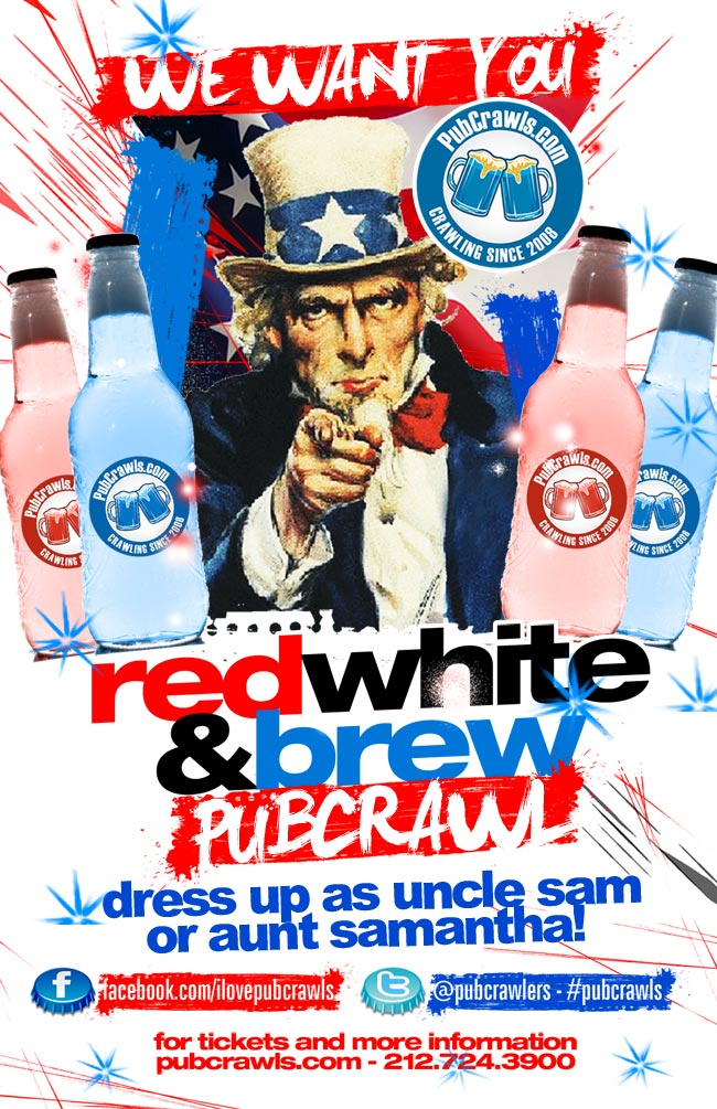 For more information please visit:http://julyfourth.com/event/new-york/new-york-city-pub-crawl/red-white-and-brew-pub-crawl-nyc