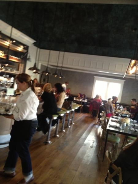 I set off this morning to partake in the coffee experience! I hear it is strong-love that! The serious coffee program lead by Lindsay DiFabbio, coffee auteur. Coffees are made to order from single-origin coffees specially brewed in a Chemex brewer, providing a rich body and low acidity. And true to form, I enjoyed a special espresso latte that was fabulous and steamed with a dollap of half & half. Deciding it was a good opportunity to eat brunch, I savored a plate of poached eggs, flax seesrye bread (made fresh by sister PAZO) and chicken sausage,. YUM!