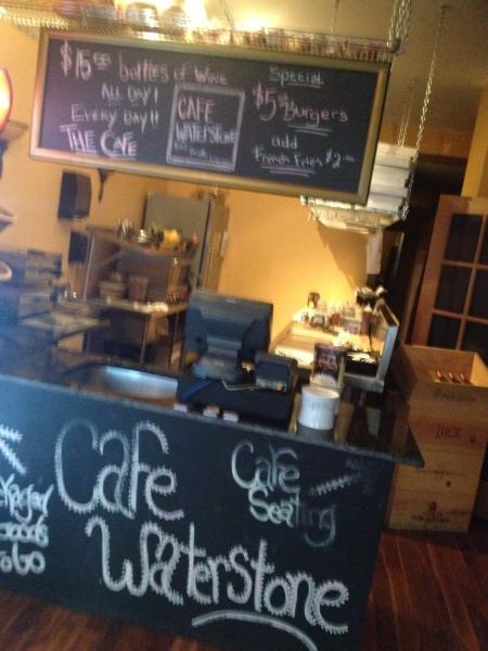 A cafe too? Yes, Lisa recently renovated the building next to the original Waterstone and added a cafe and some apartments above. Located directly across from Maryland General Hospital, the Cafe is perfectly suited to serve the community. On the menu are all things found in the Bar & Grille, plus $5 burgers, (add fries for $2) and cash and carry wines under $15.