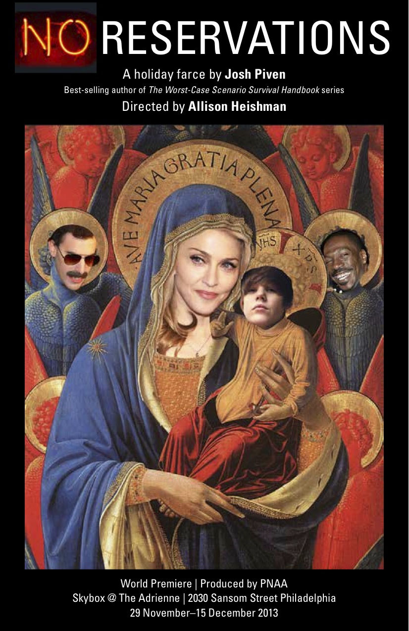New York Times best-selling humorist Josh Piven gives theater audiences a best-case scenario for a surefire hit with the world premier of No Reservations. This highly original madcap holiday comedy satirizes our celebrity-obsessed, media-saturated culture, and asks what the age-old story of Christmas might look like today. Written by author of The Worst-Case Scenario Survival Handbook and directed by Allison Heishman, the production runs November 26 through December 15, 2013 at Skybox @The Adrienne Theater. Tickets are available now for $18 to $25. For more information, call 267-225-7175.