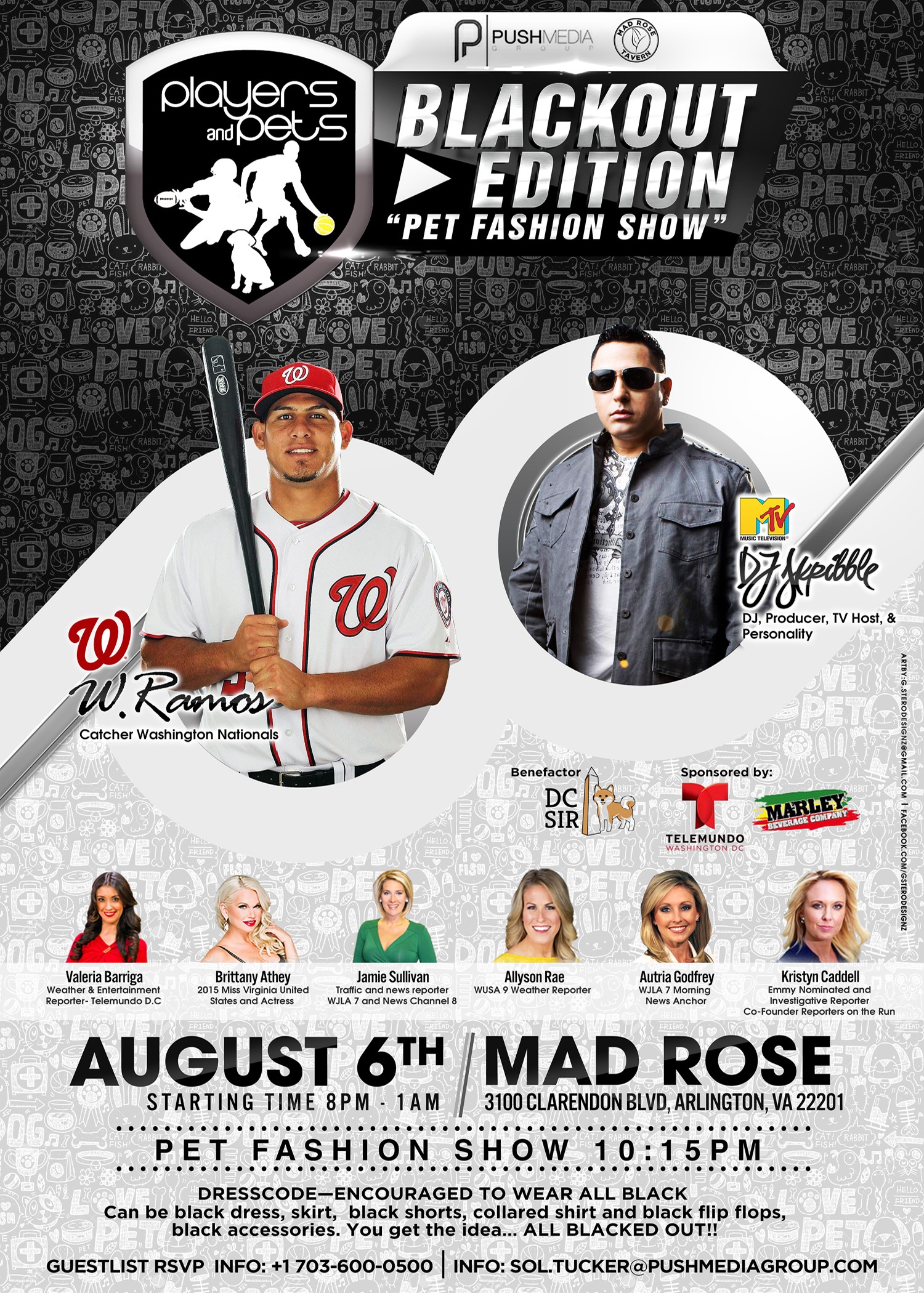 Wilson Ramos, DJ Skribble, Mad Rose Tavern and Push Media along with many other companies and our media partner Telemundo who care about animal welfare present Player and Pets BLACKOUT Edition.