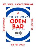 Celebrate this 4th of July at SideBAR and enjoy our TWO HOUR open bar package from 6-9PM all weekend long! Tickets are only $75, get ready to celebrate with red, white, and booze!