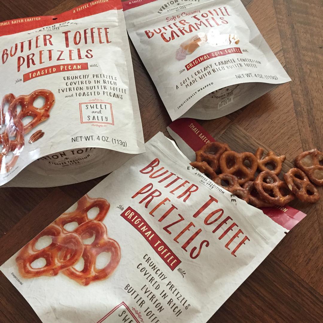 Fast forward to 2017, Everton Toffee is continuing to produce small craft batches of toffee candy and also, delightful toffee-laced pretzel treats. Flavors like sweet and salty, original toffee, butter pecan and toasted cashew treats made my mouth water. The price per bag, seen left, is a reasonable $5. And, if you can drag your fingers away from the snack, reseal for a sweet nibble later.