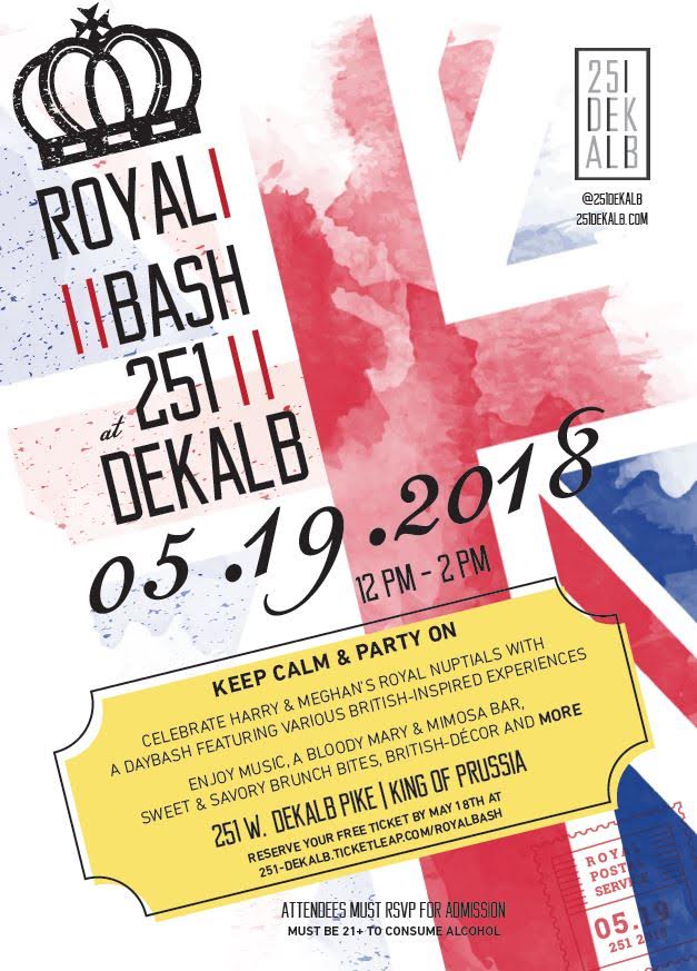 Keep calm & party on at 251 Dekalb’s Royal Bash on May 19, 2018 from 12-2pm. Celebrate Harry & Meghan’s royal nuptials with a day bash featuring various British-inspired experiences. Enjoy music, a bloody mary & mimosa bar, sweet & savory brunch bites, british-inspired decor and more!