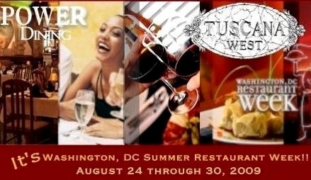 Tuscana West - DC Restaurant Week!-Join us the week of August 24 through 30 for awe-inspiring, 3-course meals prepared especially for this gourmet event. Tuscana West is proud to participate in the 15th Washington, DC Restaurant Week from August 24-30. Lunch: $20.09 for a three-course fixed-price meal Dinner: $35.09 for a three-course fixed-price meal Beverages, gratuity and tax are not included. Reservations are Suggested for this Popular Event! Call 202-289-7300 to make your reservation today.